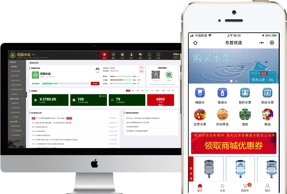 支持水票一键下单、批量下单,也支持普通订单提交时智能选择可用水票。