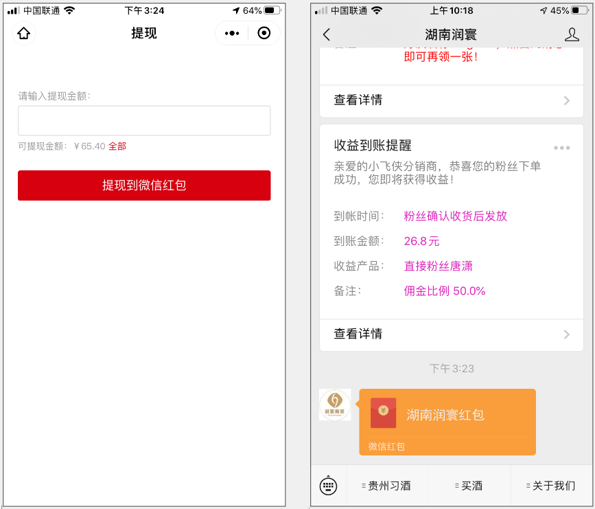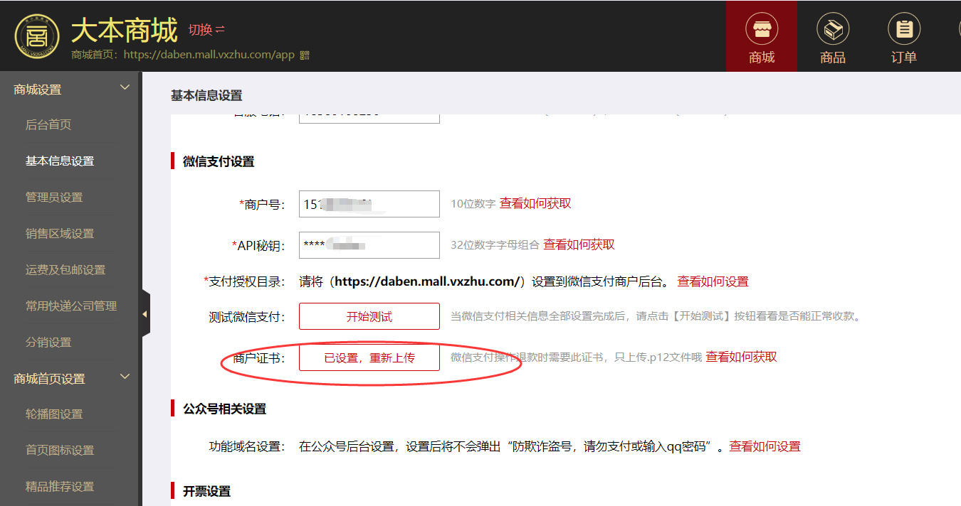 注意,商家需要提前将微信支付的证书上传到商城后台,并且要开通微信现金红包功能,并且要保证微信支付运营账户里面有足够的余额,否则分销商无法通过微信现金红包自助提现。